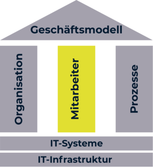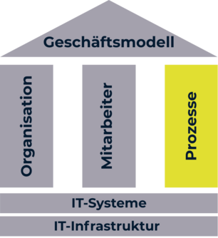 Diese ersten Schritte liefern messbare Effekte und lernen gleichzeitig über Reifegrade von Prozessen, Daten, Organisation und Systemen. Daraus entsteht ein Transformationspfad, der die Architektur des Unternehmenshauses schrittweise weiterentwickelt – mit einer klaren Verbindung zwischen Strategie, operativem Alltag und technischer Umsetzung.